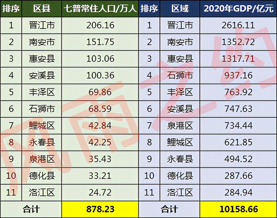 泉州各区县人口一览:南安市151万,鲤城区42万