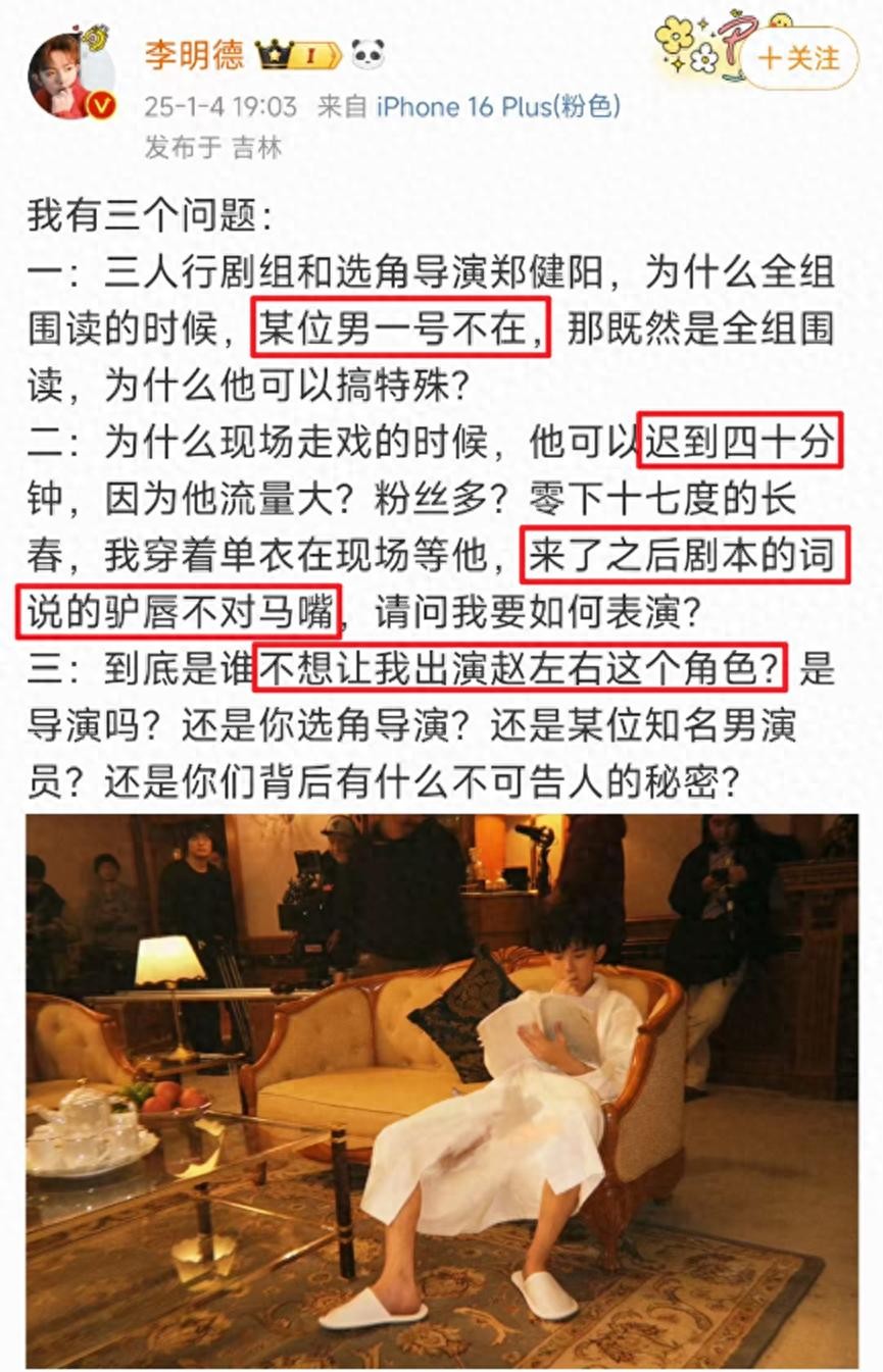比如剧组微博说李明德没有去围读,结果导演说李明德两天围读哭了很多次,自己打自己脸。