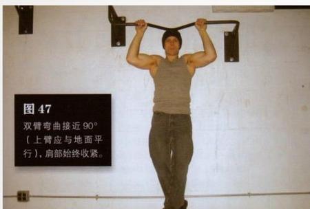 3:引体向上的技巧:起始姿势时,肘部要微微弯曲。在动作的最低点不要完全放松身体。上升时“放松"双肩,下降时“收紧双肩"。
