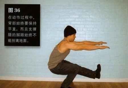 2:深蹲的技巧:做深蹲时一定要完全伸直双腿,在做动作时使肌肉有效的控制下蹲。下蹲的过程中稍微前倾。